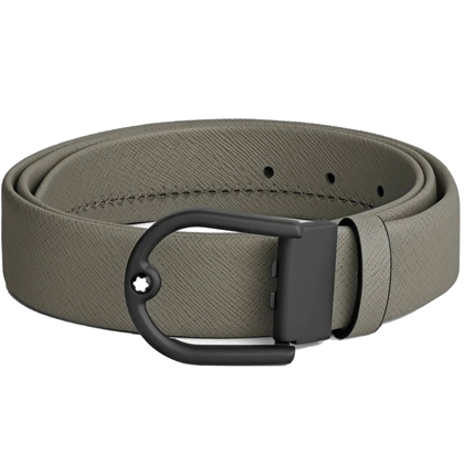 Кожаный ремень 35 мм из кожи серого цвета, пряжка в форме подковы от магазина премиальных ручек Premium Pens в Северодвинске.