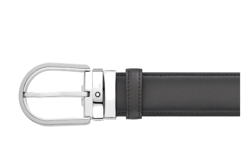 Кожаный ремень с пряжкой в форме подковы серого цвета 35 мм от магазина премиальных ручек Premium Pens в Северодвинске.
